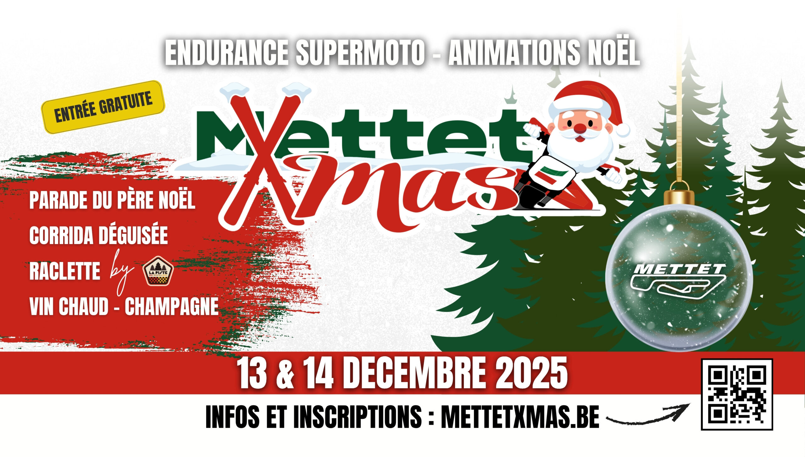 Mettet XP et le Circuit Jules Tacheny accueilleront, les 13 et 14 décembre 2025, un nouvel événement, le Mettet XMas. Une festivité hivernale mêlant l’endurance supermoto, une corrida déguisée et des animations familiales en tout genre. Un rendez-vous pensé pour rassembler pilotes, familles, spectateurs et passionnés dans un cadre chaleureux, accessible et entièrement décoré pour l’occasion.