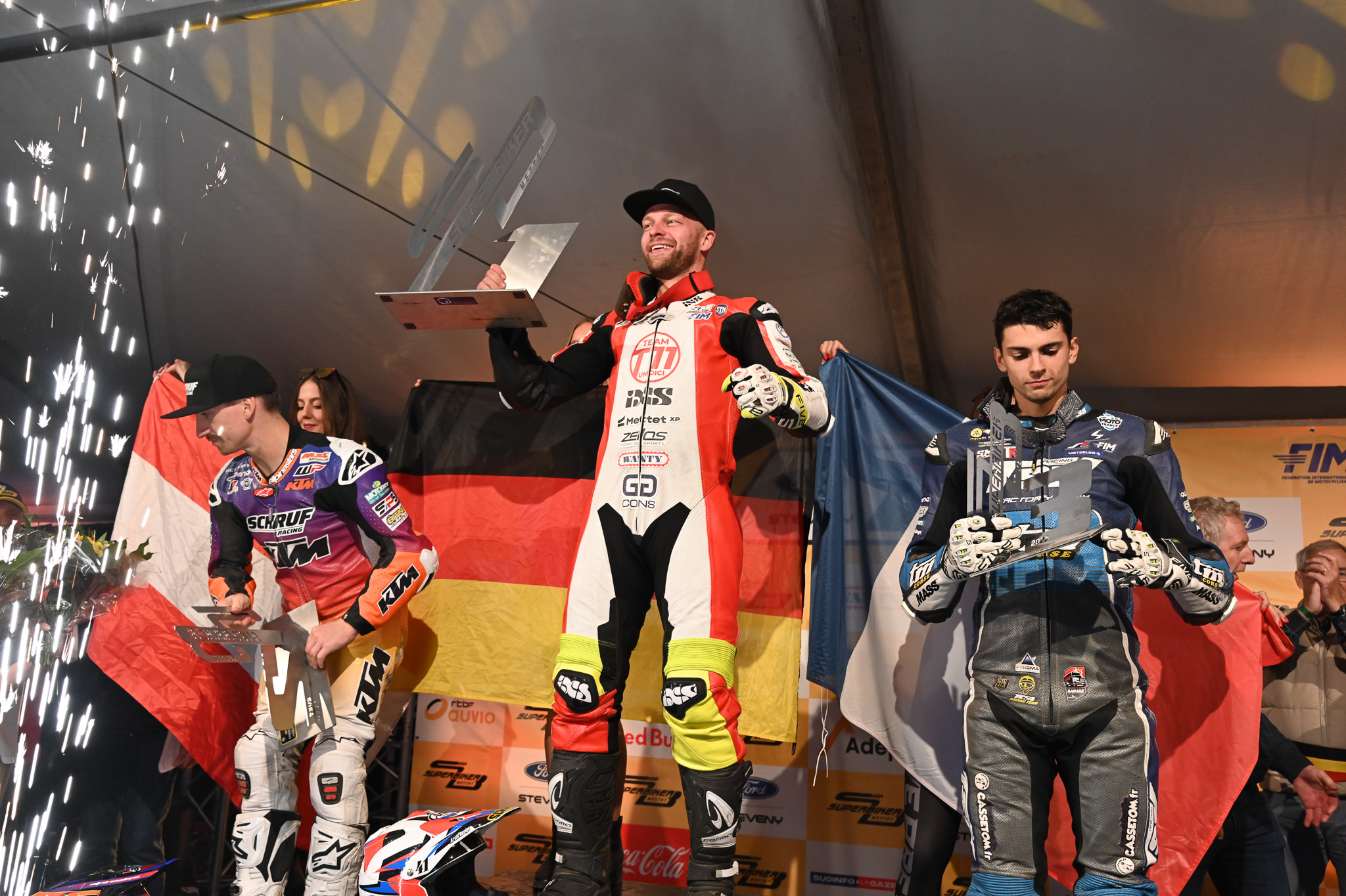 Tegelijkertijd maakte de finale van het FIM Supermoto S1GP Wereldkampioenschap alle verwachtingen waar. Marc-Reiner Schmidt, die tijdens de laatste manche voor de vijfde keer op rij Wereldkampioen werd, pakt de titel van de GP van België na een sterk weekend en een perfect beheerst seizoen. Achter hem vinden we zijn gebruikelijke rivalen: de Oostenrijker Lukas Höllbacher en de Fransman Steve Bonnal, respectievelijk 2e en 3e op het podium. Net als in 2024 eindigde Romain Kaivers, de beste Belgische vertegenwoordiger in Supermoto, op een mooie zesde plaats op eigen bodem.