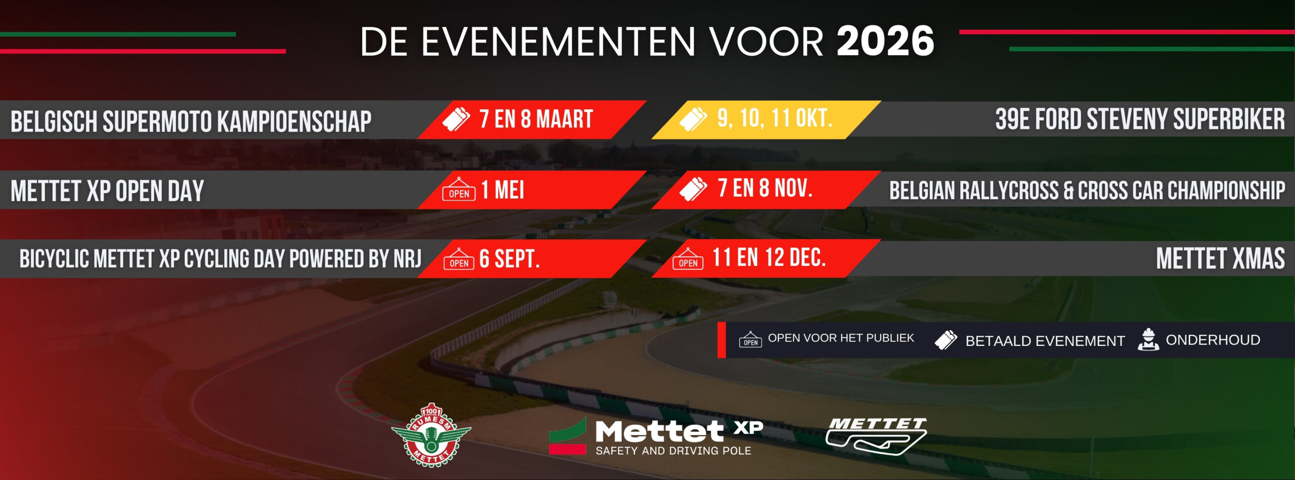 In 2026 zet Mettet XP de viering van het honderdjarig bestaan van de RUMESM (Royal Union Motor Entre Sambre et Meuse) verder, met een vierde en voorlaatste feestjaar vol topevenementen. Competities, vaste waarden op de kalender en publieksgerichte events zullen het hele jaar door leven brengen in de infrastructuur van het circuit.